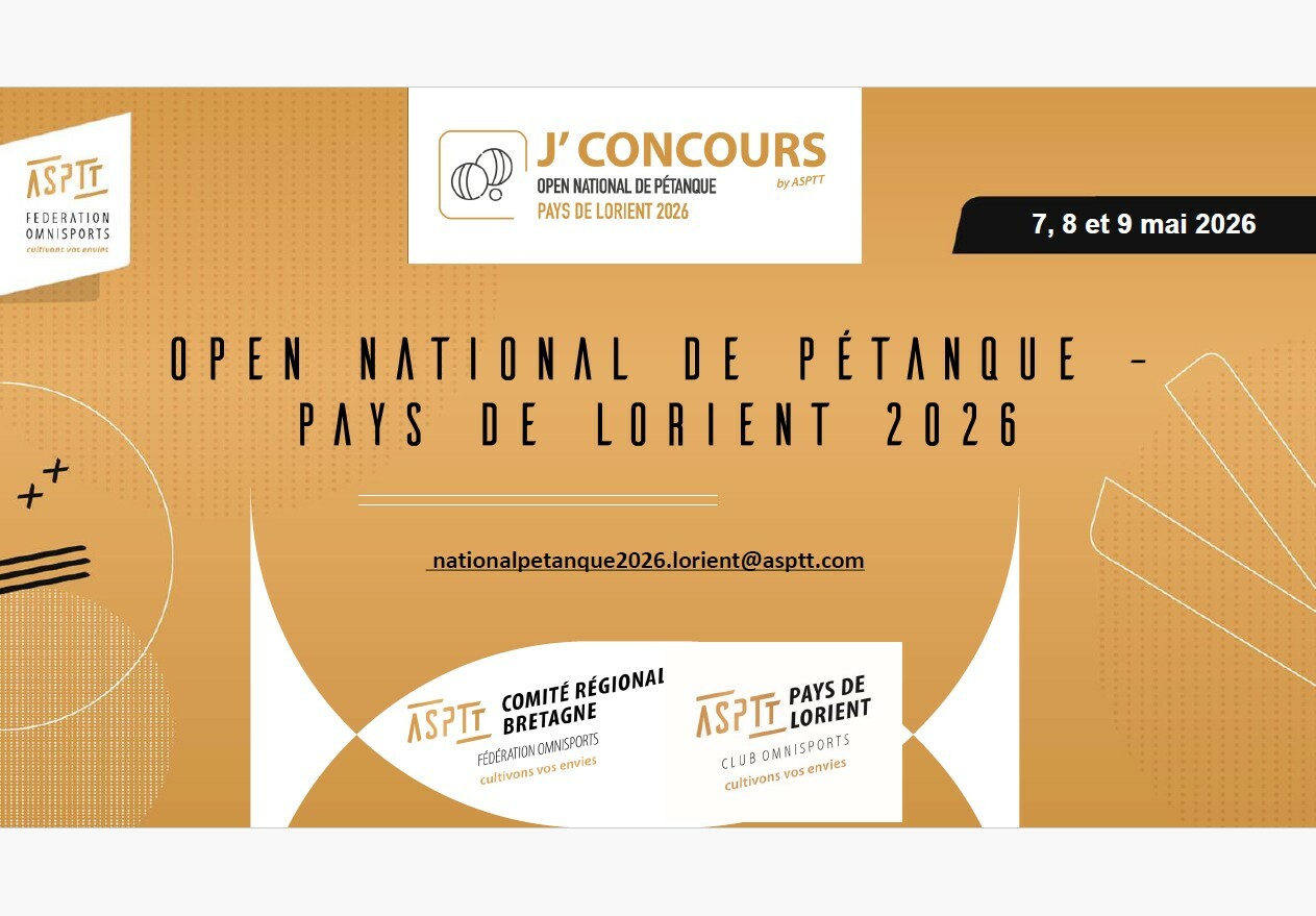 " Lorient organise un Open National de Pétanque ASPTT du 7 au 9 mai 2026.