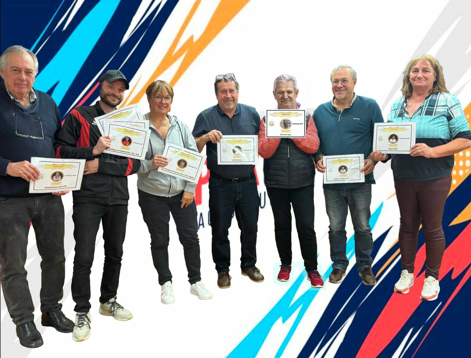 à l'issue de la réunion, menée de "main de Maître" par notre Président Joel , furent décernés des diplômes, avec remise de récompenses pour les joueurs et joueuses méritants ; voir document associé
