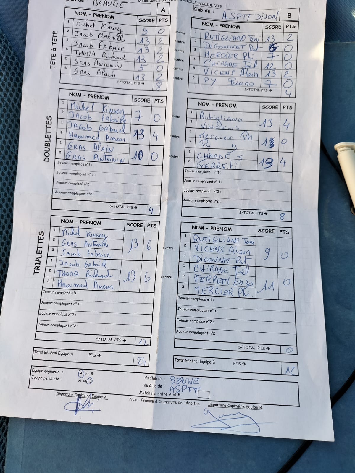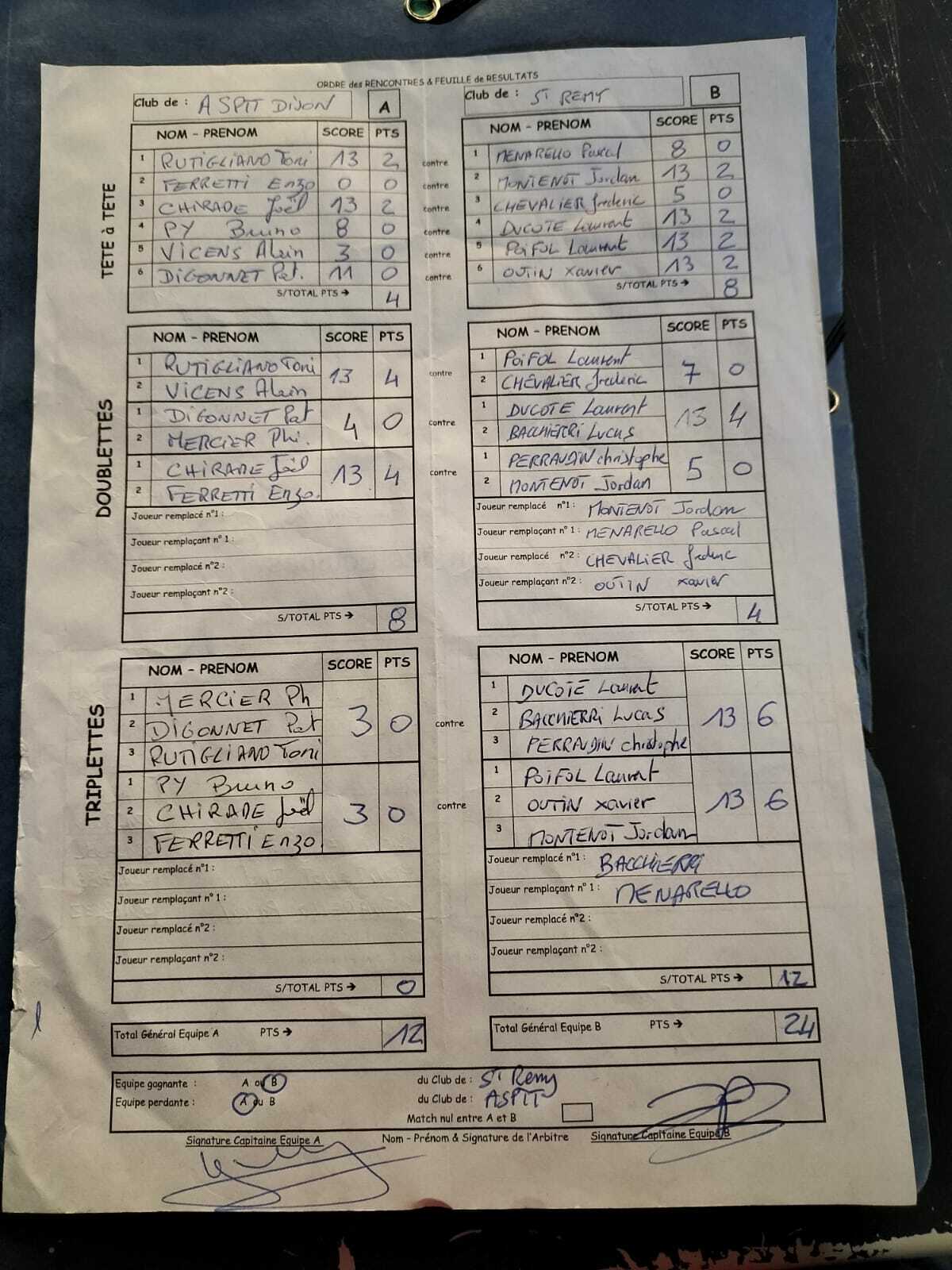 S 4/10, J1 8h30 : contre St-Rémy 1 défaite 24-12 J2 14h30 Beaune 1 défaite 24-12