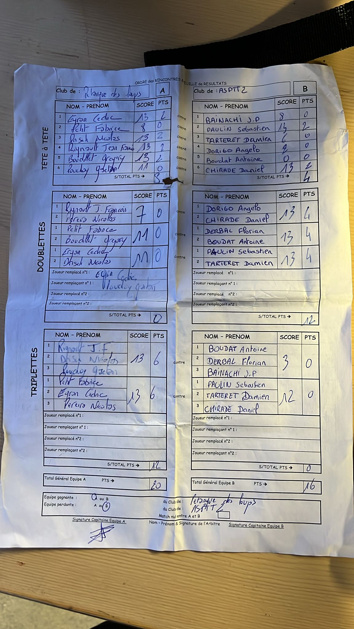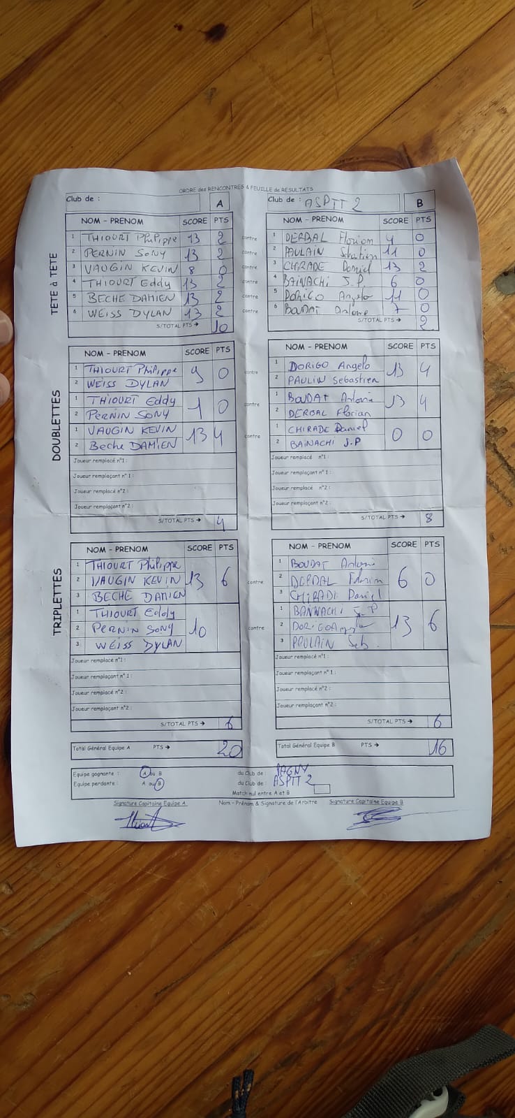 à nos Capitaines d'équipes, n'oubliez pas de nous envoyer les résultats, feuilles de matches et qq photos d'équipes via Whats'Asptt ! Merci