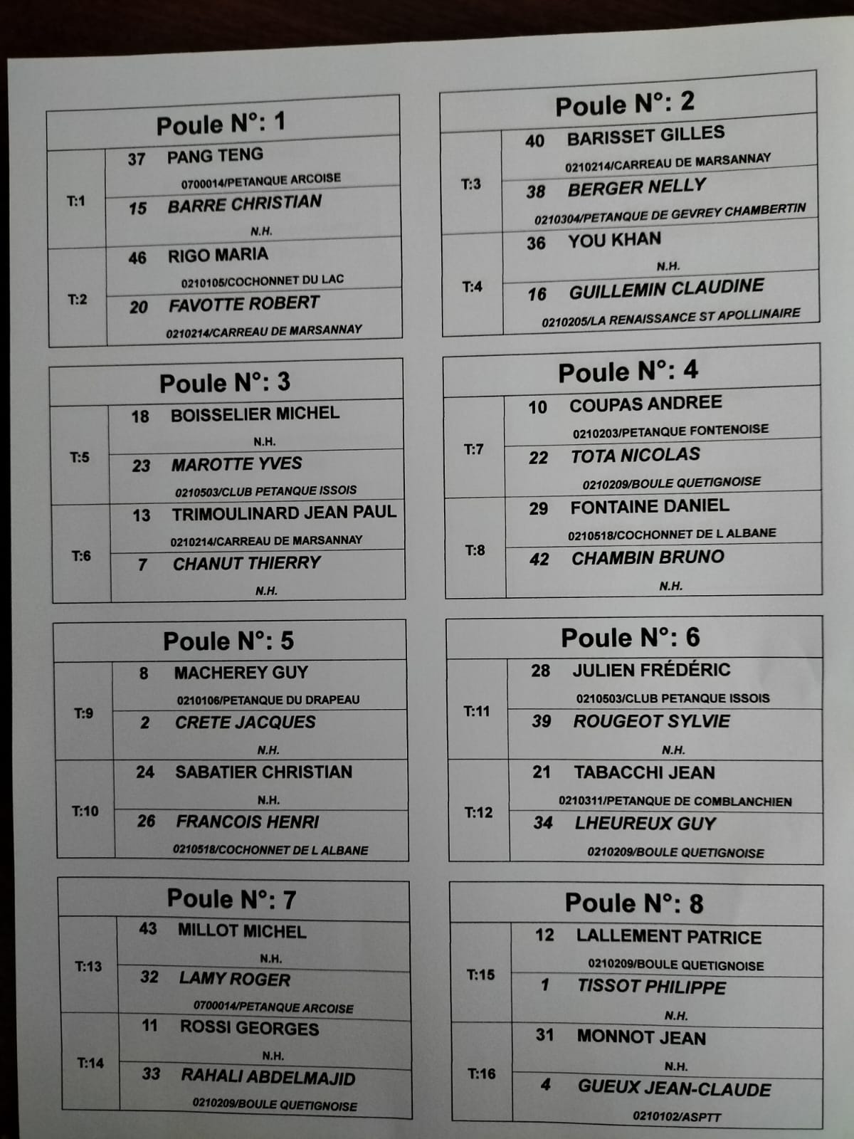 2 équipes Asptt engagées et 2 assimilées . Bravo à l'équipe "Nanard, Tony, Jean" qui s'incline en 1/4F du A, après avoir battu l'équipe de Marsannay "Trimoulinard/ Aquilini, Duchaussoy" Champion de Côte d'Or Vétérans 2023 et qualifiée au Championnat de France !