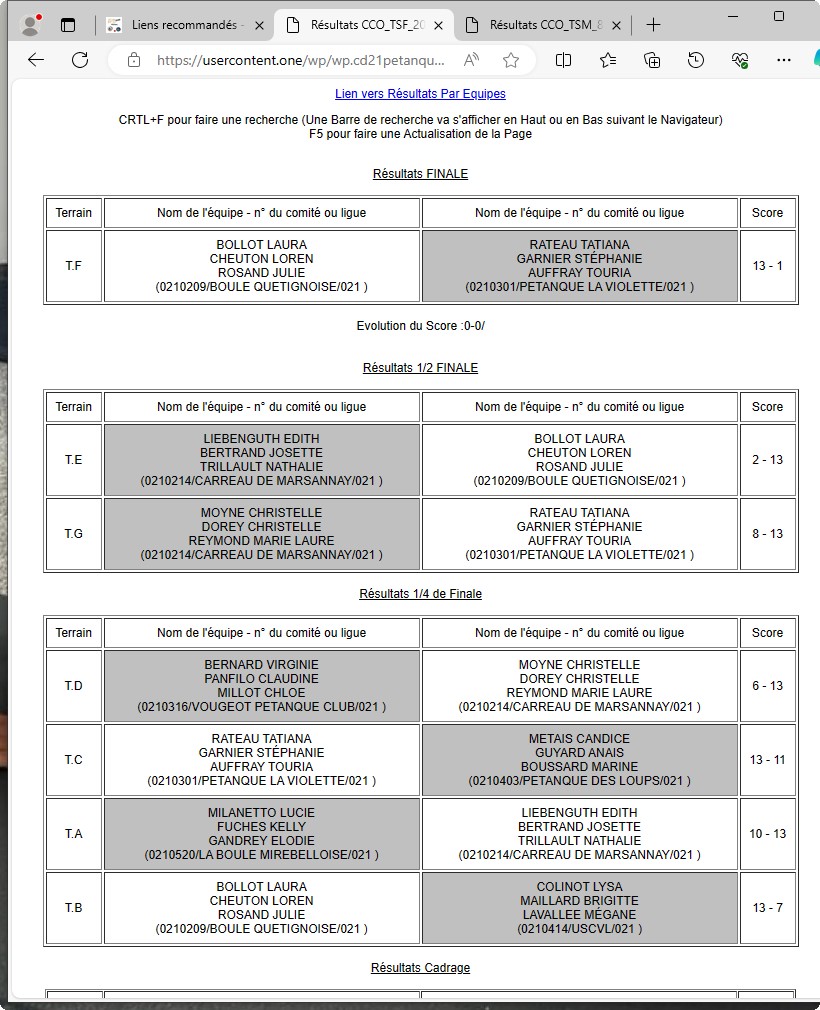CCO TSF : équipe Christelle/ Gigi/ Martine perd après les poules