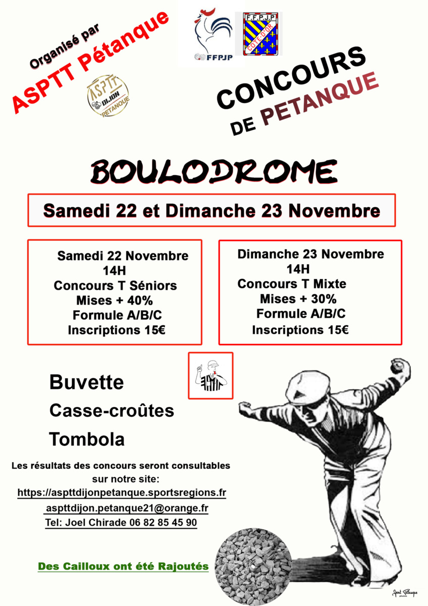 Concours Triplette Sénior Sam 22/11 début 14h; formule A/ B/ C voir affiche