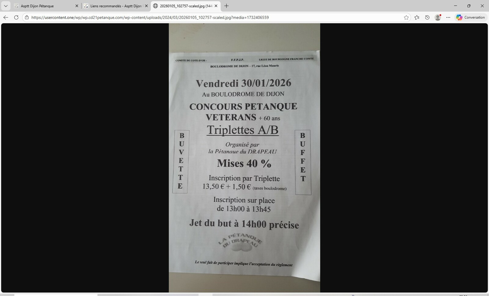 Asptt Dijon Pétanque, mail : aspttdijon.petanque21@orange.fr
