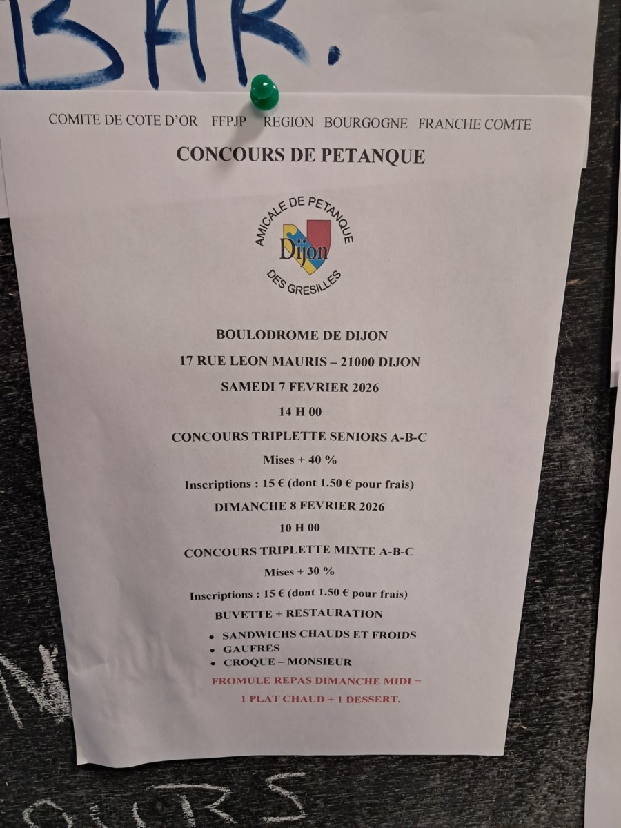 Asptt Dijon Pétanque, mail : aspttdijon.petanque21@orange.fr