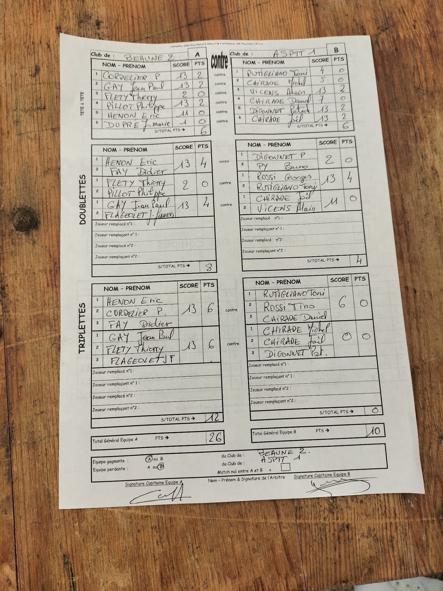 J3 8h30 contre Beaune 2 défaite 26 - 10 ; autres résultats Elite : Fenay Perdu - Ste Colombe Gagné ; Genlis P - Marsannay G ; Longchamp G - Mirebeau P