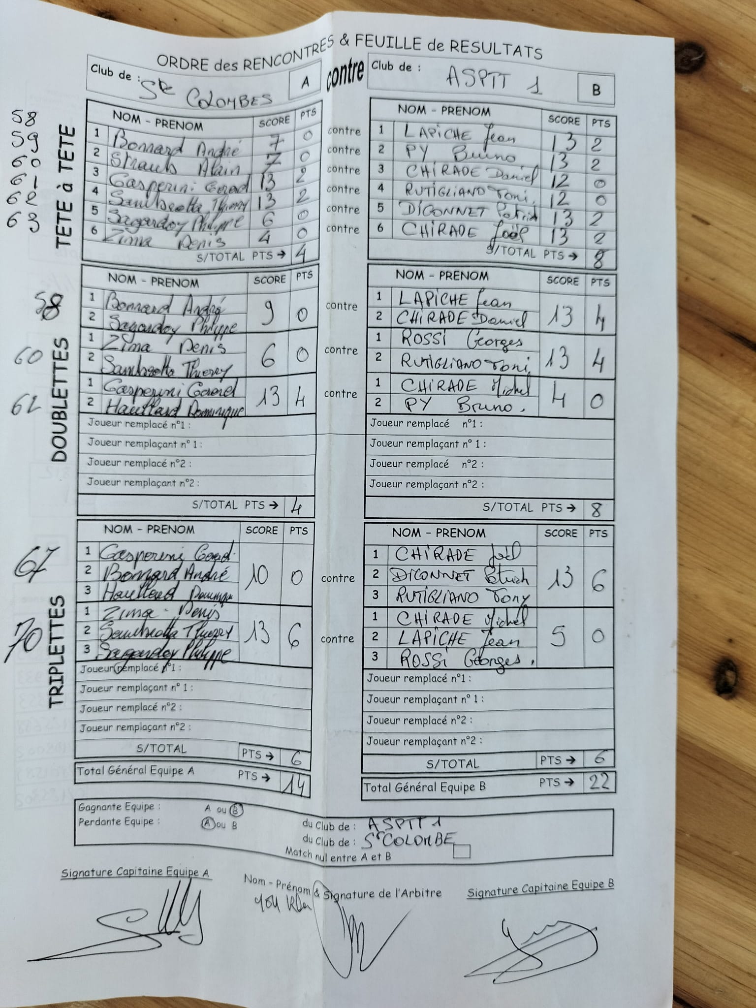J4 14h30 contre Ste Colombe 1 victoire 22 - 14 ; autres résultats : Fenay P - Beaune G ; Genlis G - Longchamp P ; Marsannay G - Mirebeau P