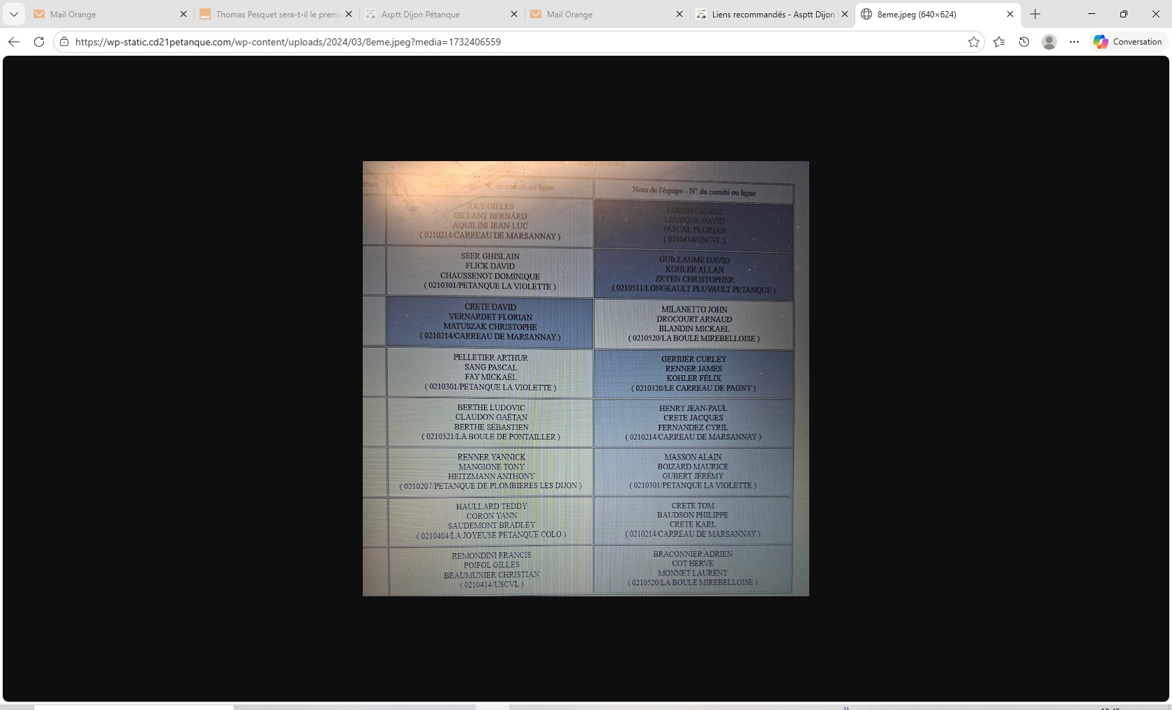 Championnat de Côte d'Or Triplette Senior Féminin le 11/04 à 9h, secteur unique Neuilly-lès-Dijon, reprise phase finale le 12/04 à 10h à Neuilly-lès-Dijon ; 59 équipes